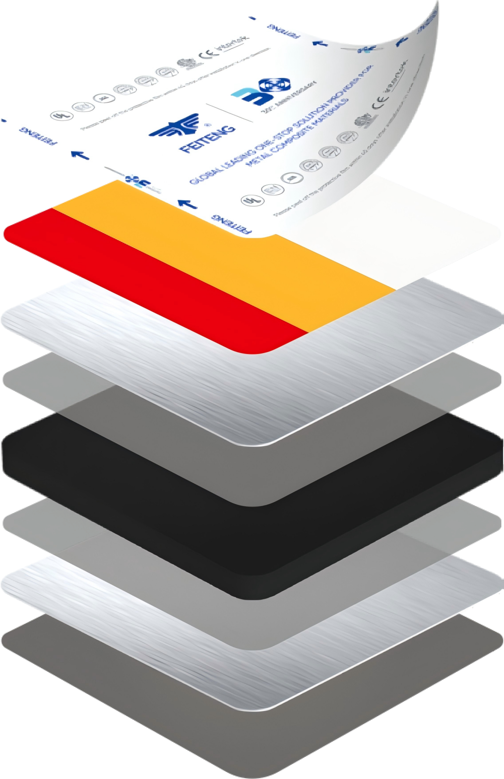飞腾LYRA系列标识级ACP(铝复合板)采用高温层压工艺,将两张表面光滑的铝板铝ECO(0.20mm 铝厚以下),LITE(0.20mm 铝厚),PLUS(0.25mm 铝厚),PREMIUM(0.30mm 铝厚),与实心聚乙烯芯材牢固粘合而成。该材料可根据设计需求自由切割成型,能呈现多种异形结构与造型,满足不同场景的审美需求。
